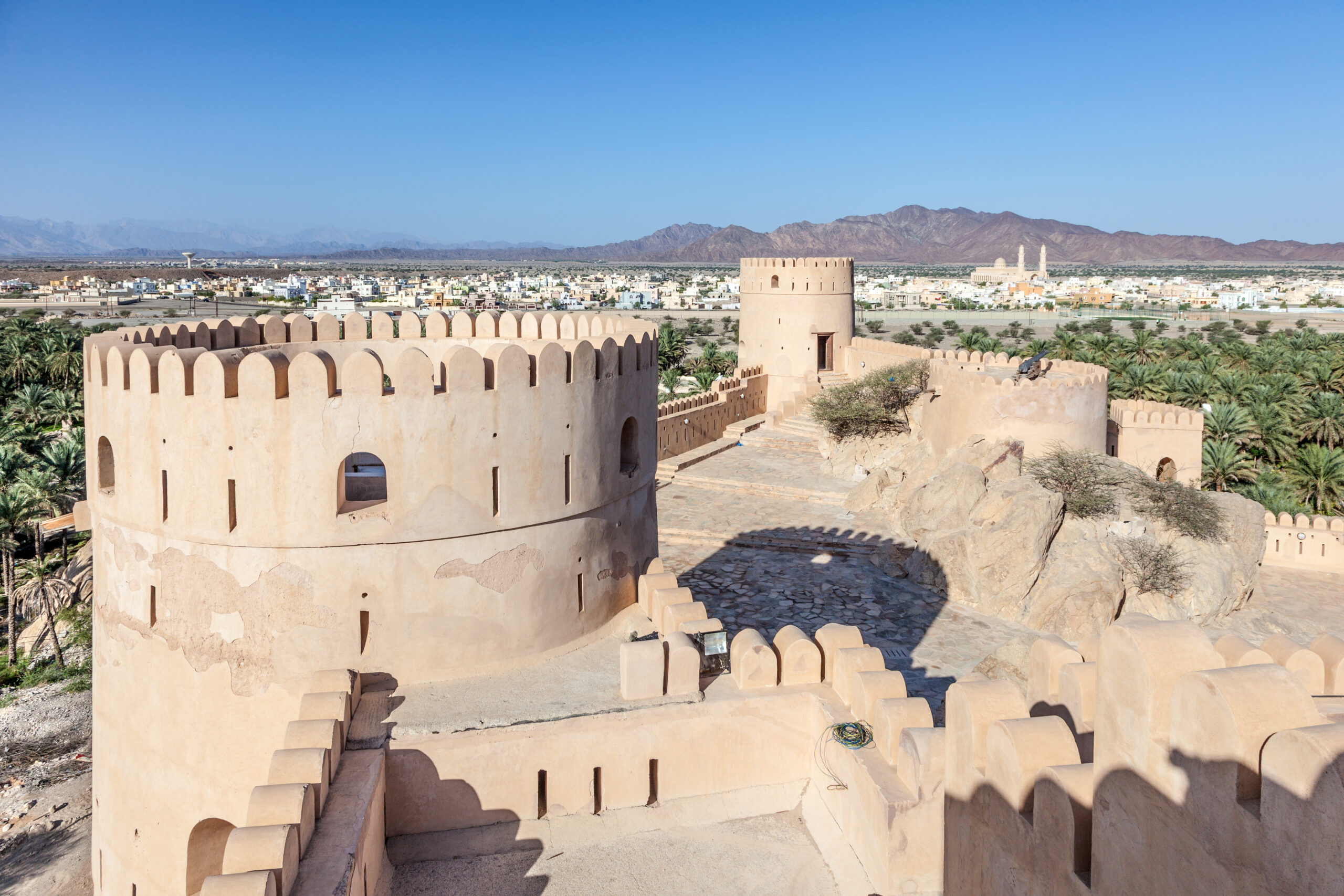 Das heutige Ziel ist Nizwa, die alte Hauptstadt des Oman. Besucht die imposante Nizwa-Festung mit ihrem riesigen Rundturm und taucht in die Geschichte des Imams ein. Auf dem traditionellen Souk erlebt ihr das geschäftige Treiben zwischen Gewürzen, Halwa, Töpferwaren und frischem Obst.