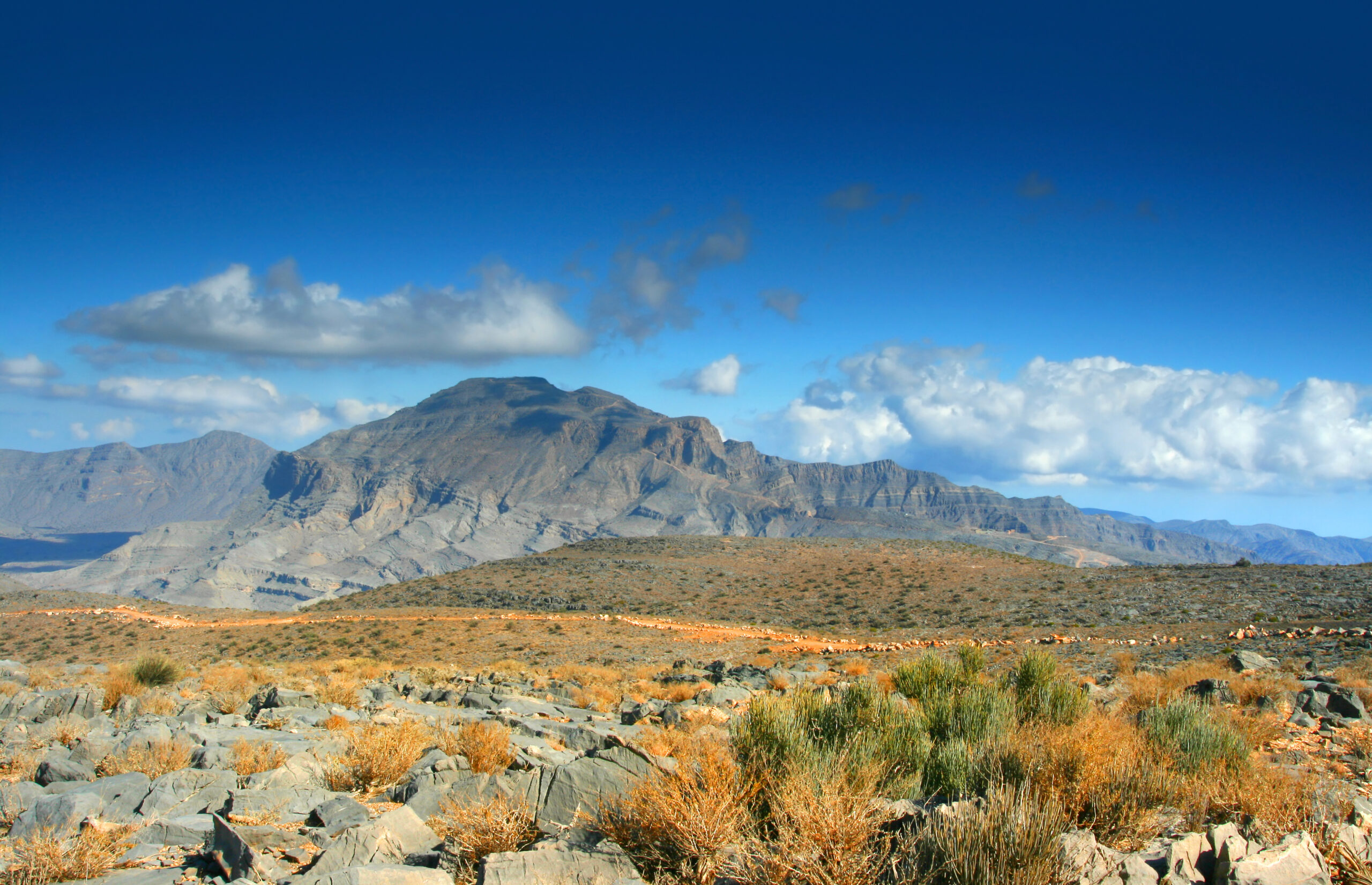 Am Nachmittag geht es hinauf in das Hochgebirge des Jebel Akhdar, das dank Terrassenfeldern, Rosenplantagen und spektakulären Aussichtspunkten zu den schönsten Regionen des Landes zählt. Wanderwege führen durch uralte Bergdörfer wie Al Ayn oder Al Aqur, und die kühleren Temperaturen machen das Plateau zu einem wohltuenden Kontrast zur Wüste.