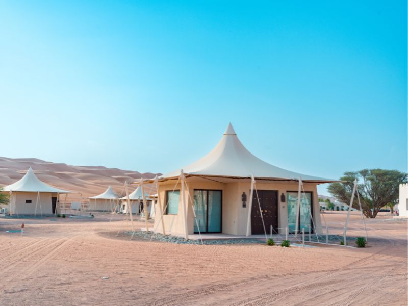 Schon von Weitem sind die rotgoldenen Dünen der Wahiba Sands zu sehen, die sich über hunderte Kilometer erstrecken und sich je nach Sonnenstand ständig verändern. Das Wüstencamp bietet Stille, prächtige Sonnenuntergänge und klare Sternenhimmel.