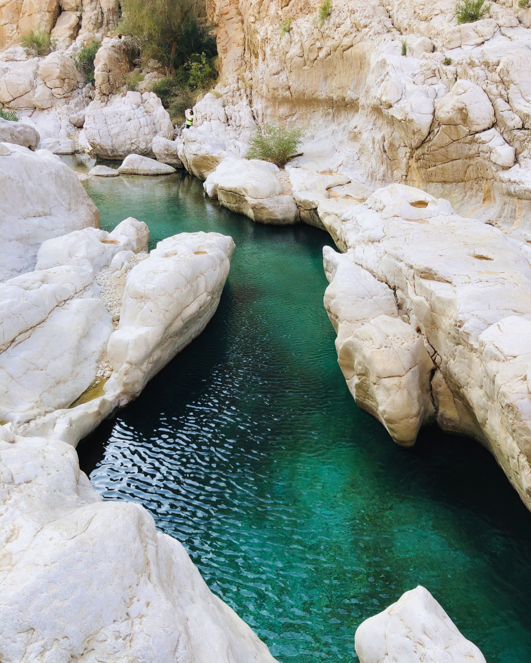 Heute geht es entlang der dramatisch schönen Küstenstraße zurück nach Muscat. Unterwegs lohnt sich ein Stopp in Wadi Shab oder Wadi Tiwi – grünen Oasen mit Wasserläufen, Palmen und Felsenpools, die zu einer kleinen Wanderung und einem erfrischenden Bad einladen.