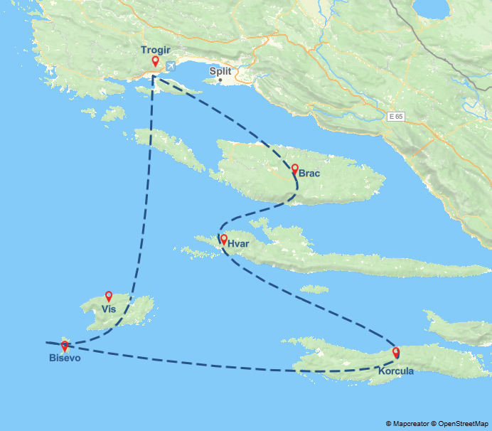 Von Split aus geht es per Fähre nach Vis, der ruhigsten und ursprünglichsten der dalmatinischen Inseln. Hier findest du abgeschiedene Buchten, traditionelle Fischerdörfer und eine authentische kroatische Lebensart. Besuche die kleinen Häfen, probiere frische Meeresfrüchte in lokalen Tavernen und entdecke die Insel mit dem Fahrrad oder zu Fuß. Ein Highlight ist ein Ausflug zur spektakulären blauen Grotte auf der Nachbarinsel Biševo, deren türkisblaues Wasser ein unvergessliches Fotomotiv bietet. Die entspannte Atmosphäre auf Vis ist perfekt, um die Ruhe und Natur abseits der großen Touristenströme zu genießen.